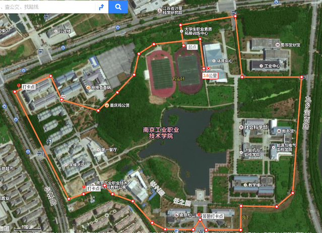 老田径场(集中出发)——老田径场北门(发卡点)——停机坪——东门——图书馆东侧——教二东侧——行政楼南侧——黄炎培广场——新建大学生活动中心南侧——易自助洗车点北侧——西门——卫生服务中心——工商银行ATM——新体育场北侧——体育馆西门(终点)。