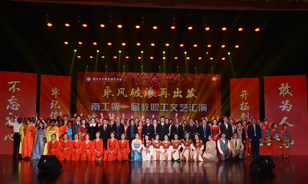 成功的演出是全校上下共同努力的结果,是全体南工人强大凝聚力和向心力的体现。衷心感谢学校党委的坚强领导和行政的关心关爱,感谢各党总支(直属党支部)、各部门(单位)、各分工会及广大会员的支持配合,感谢所有老师的精彩演出,感谢现场和幕后所有工作人员的默默奉献!百年南工踏上新的征途,一代代南工人与时代、与国家、与学校一起,在奋进中绽放精彩、实现梦想、成就人生。面向新时代,立足新百年,开启新征程,我们一定不忘初心,牢记使命,以梦为马,不负韶华,乘风破浪再出发。